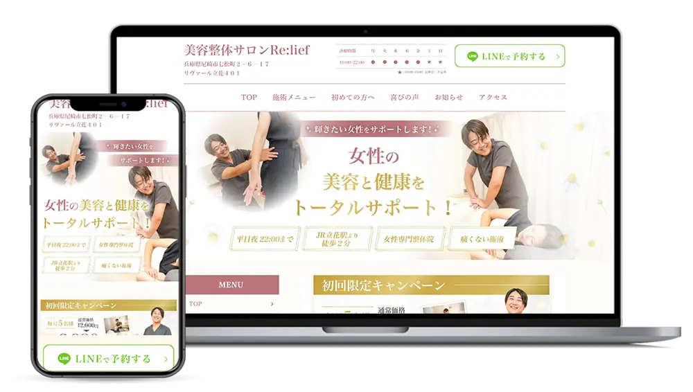ホームページをリニューアルいたしました|尼崎市の女性専門整体院【美容整体サロンRe:lief】JR立花駅より徒歩2分